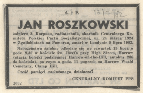 W latach 1957-1961 roku członek Centralnego Sądu Partyjnego Polskiej Partii Socjalistycznej na emigracji w Wielkiej Brytanii, jak również wieloletni skarbnik Centralnego Komitetu PPS.