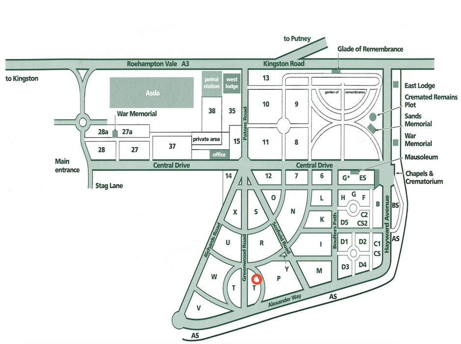 Lokalizacja: Putney Vale Cemetery, Stag Ln, Wimbledon, London SW15 3DZ, Wielka Brytania