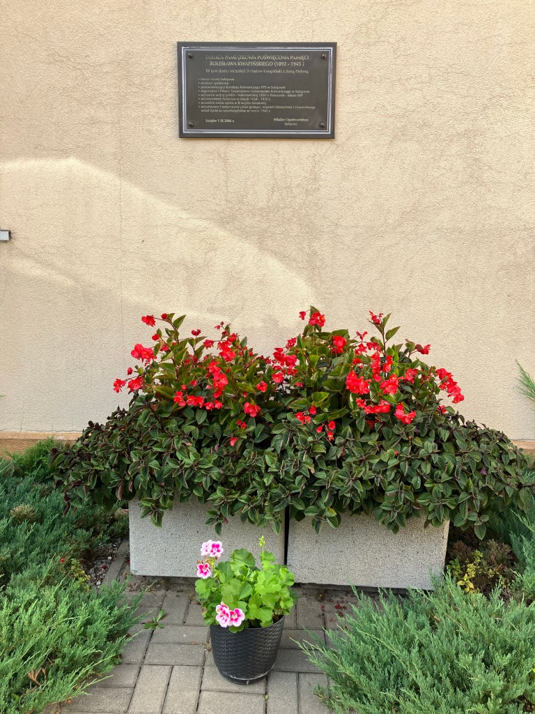 Tablica umieszczona na ścianie Urzędu Miasta w Sulejowie upamiętnia Bolesława Kwapińskiego, działacza PPS, zasłużonego mieszkańca miasta.
