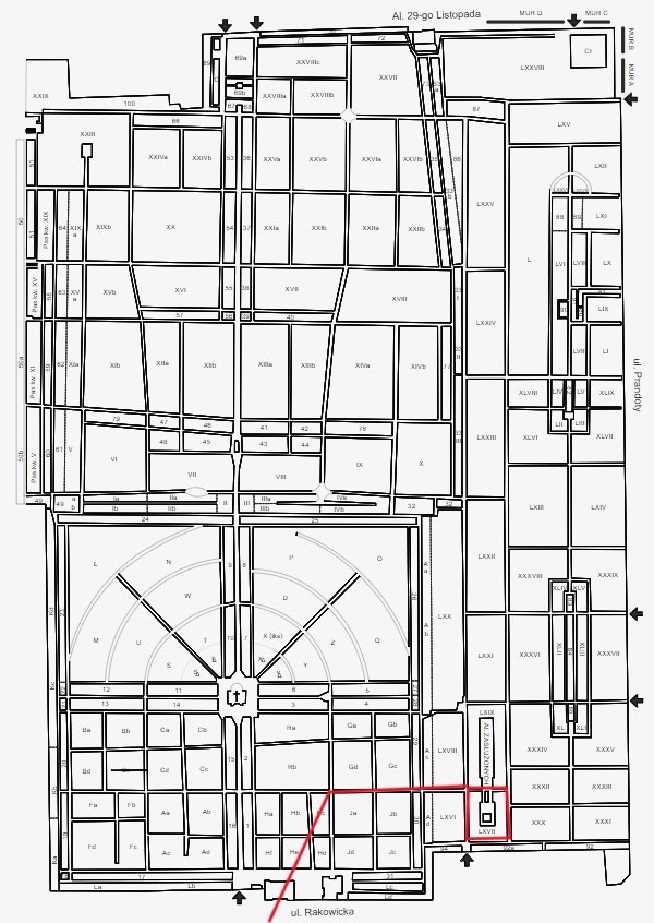 Kwatera: LXVII, Rząd: płd 1, Miejsce: 7